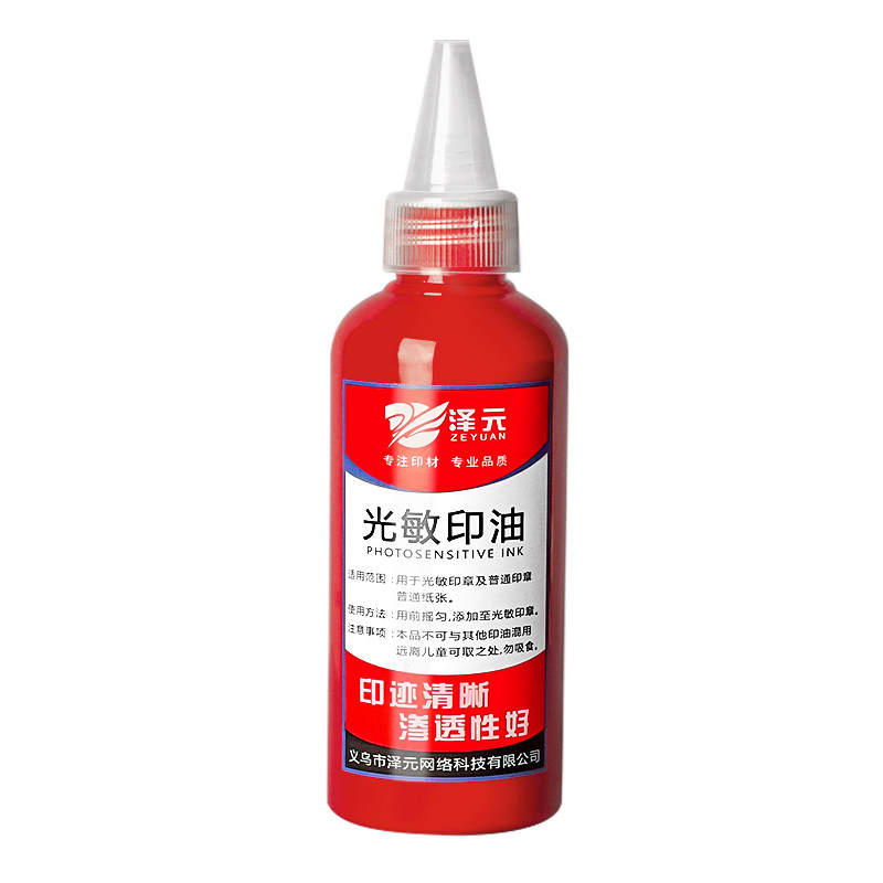 光敏印油红色大瓶100ml速干红色印油印章油墨水印泥油防水秒干 印油光敏公章印油印台补充液非原子非回墨A1