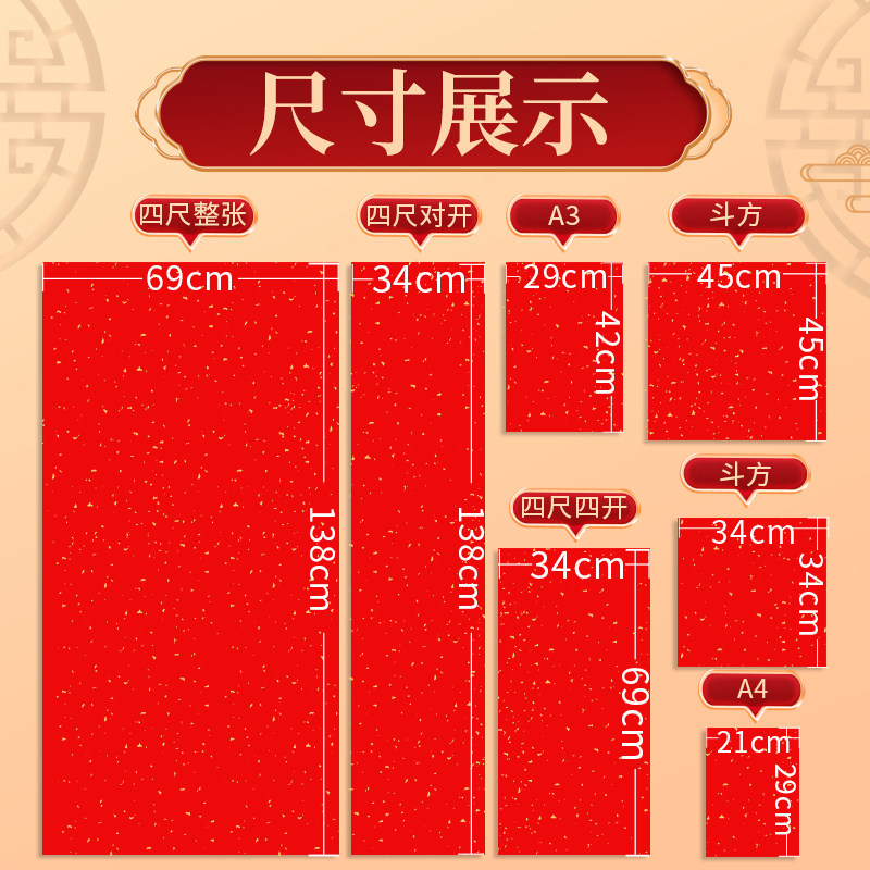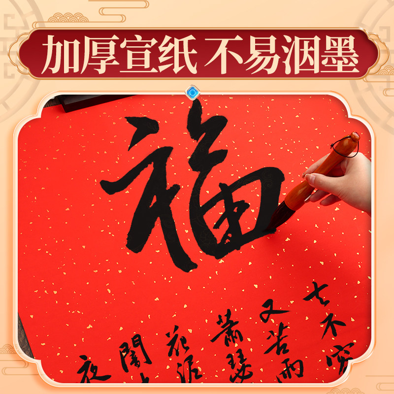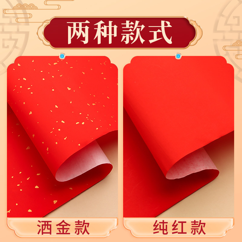 万年红洒金宣纸空白大张对联红纸福字专用纸压井盖剪纸手写婚庆半生熟四尺六尺书法批发结婚乔迁春联纸家用