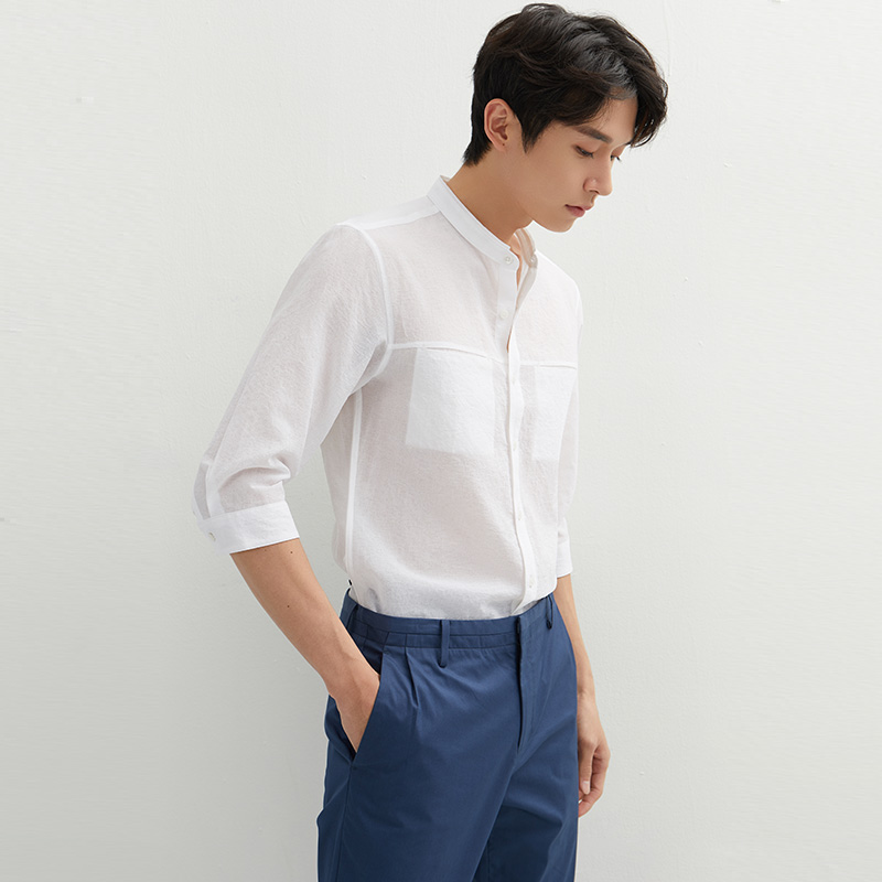 ZIOZIA夏季韩版男装休闲舒适简约男休闲七分袖衬衫ZWC12364A