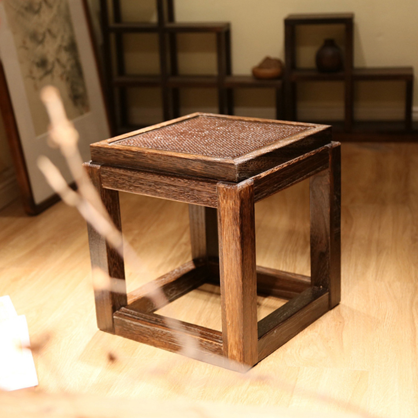 烧桐实木矮凳子中式小方坐凳换鞋凳客厅沙发边凳复古小板凳餐边凳