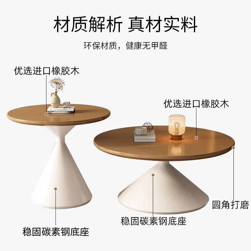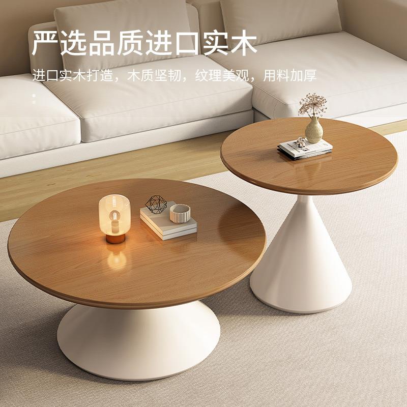 奶油风茶几实木客厅家用小户型简约现代极简风2024新款圆形边几桌
