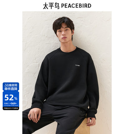 太平鸟男装复古圆领分割线字母卫衣黑色宽松帅气卫衣上衣男潮Y