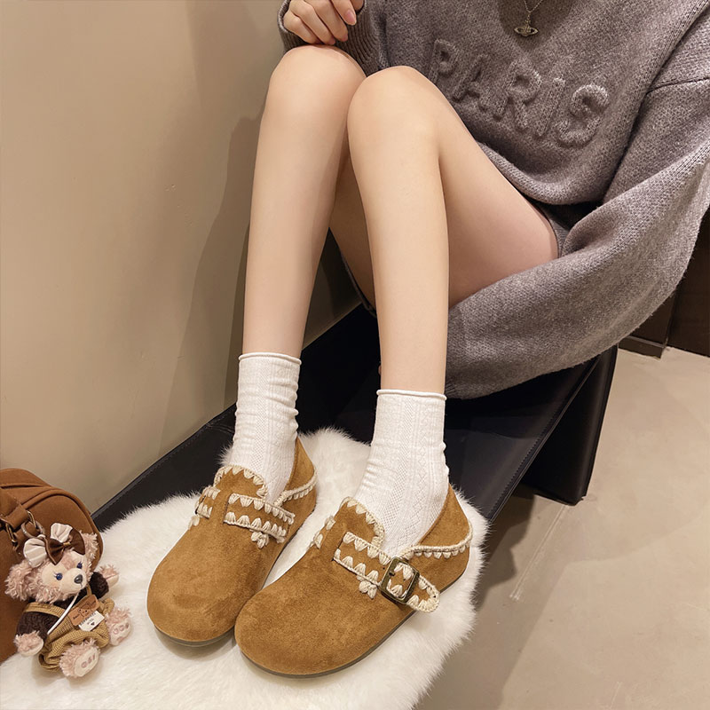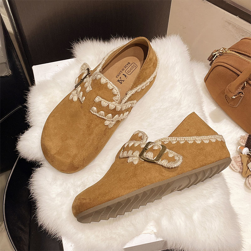 厚底勃肯鞋女全包2025新款一脚蹬内增高春秋单鞋女鞋子加绒毛绒