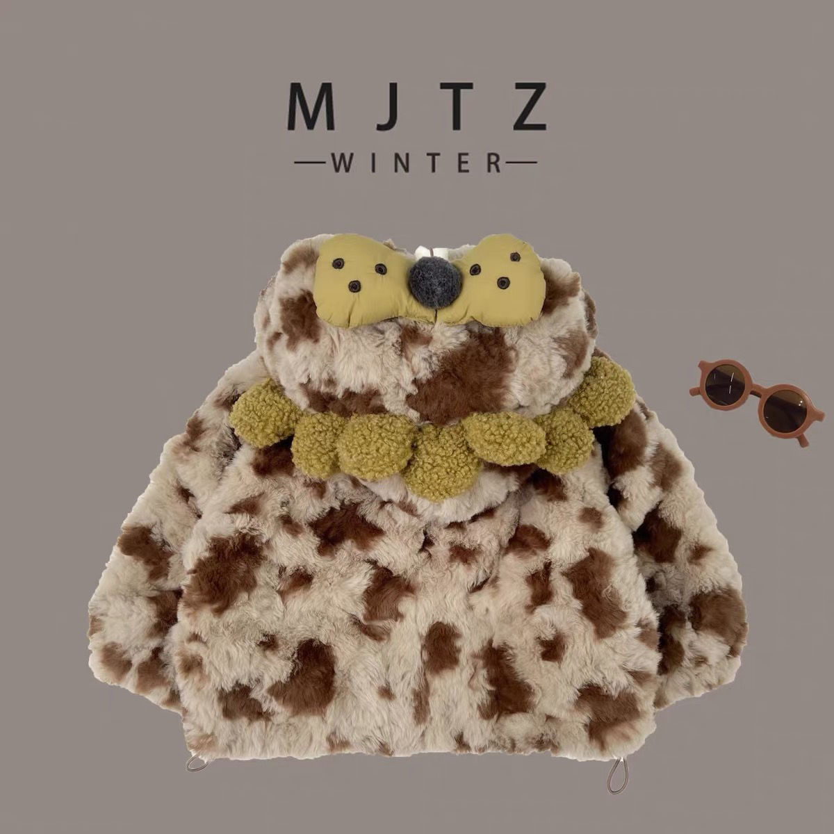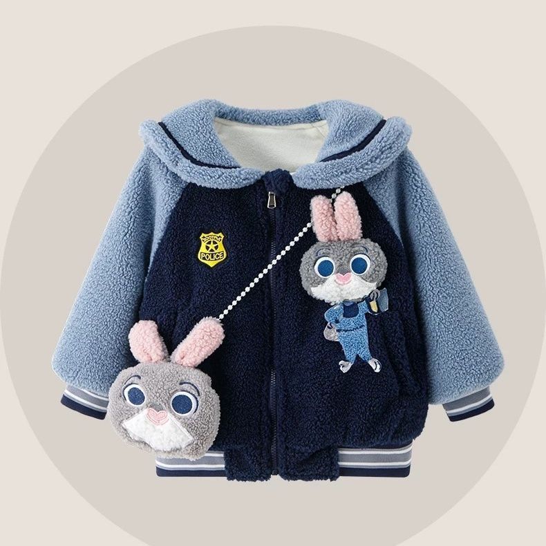 儿童毛毛外套男童女童加绒加厚保暖卡通可爱棉衣外套冬装派克服厚