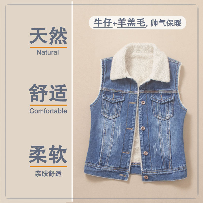 加绒牛仔马甲女2025新款秋冬季女士外穿小个子短款棉背心大码马夹