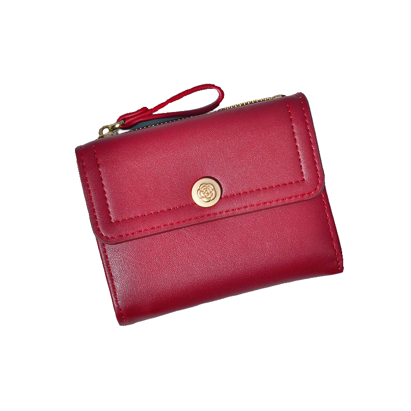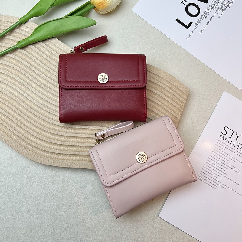 简约复古山茶花小钱包女短款