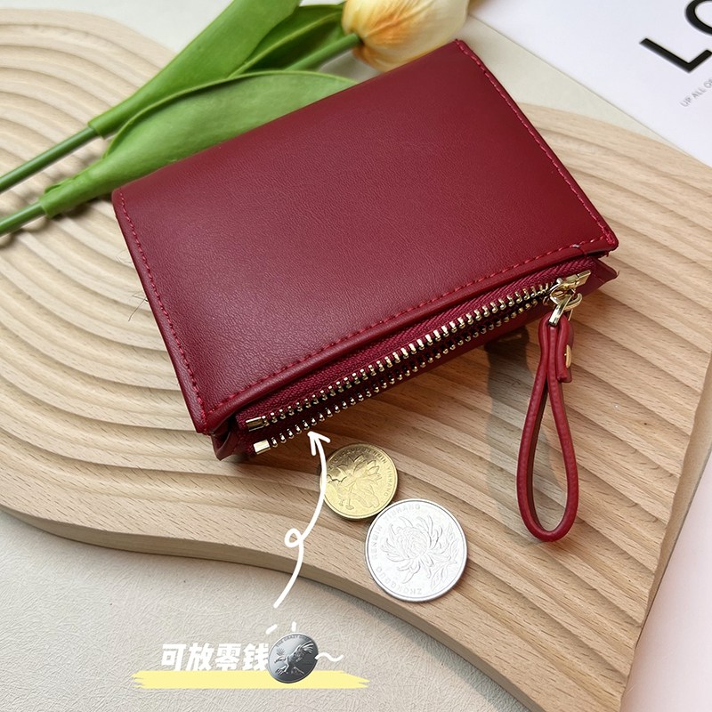 简约复古山茶花钱包女小众设计感学生卡包零钱一体多卡位小巧精致