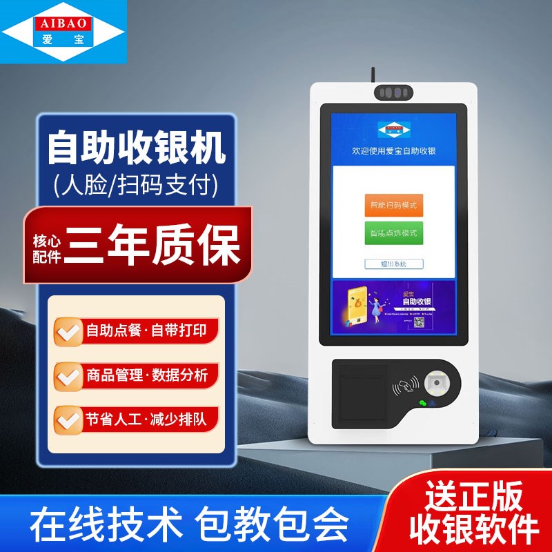 爱宝23.6寸新零售刷脸支付自助收银机一体机超市商场水果生鲜称重