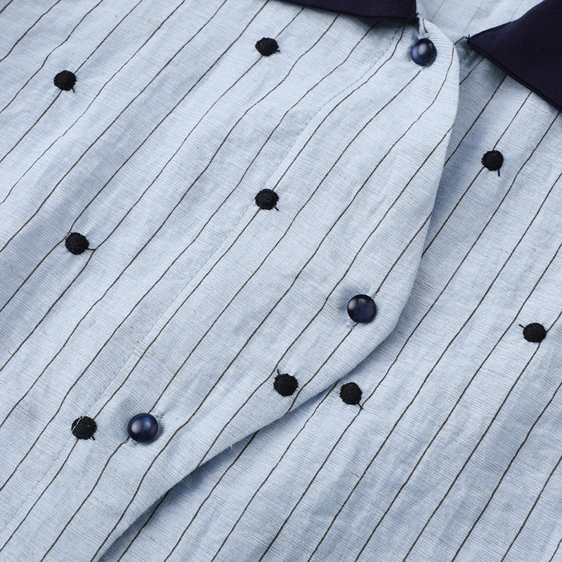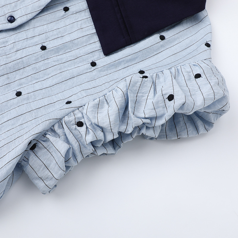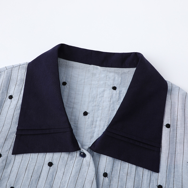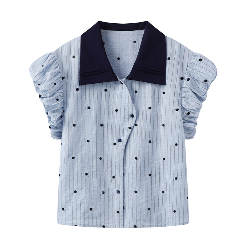 波点刺绣衬衫女2025夏新款显瘦上衣设计感独特别致短袖衬衣航海系