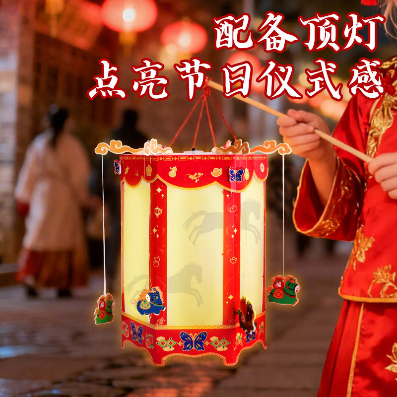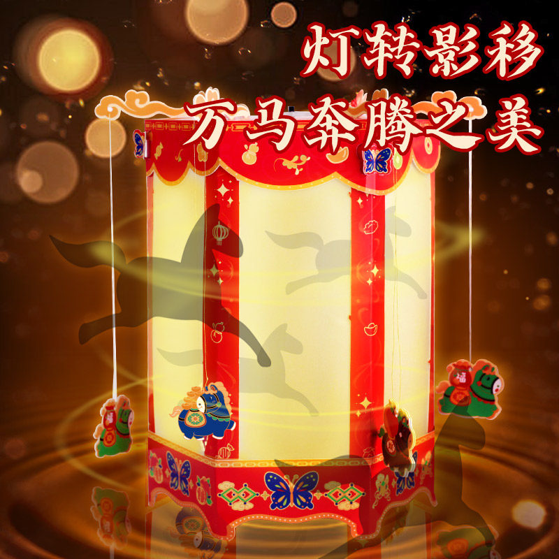 新年走马灯旋转手工DIY灯笼非遗马年材料元宵节宫灯礼物儿童玩具