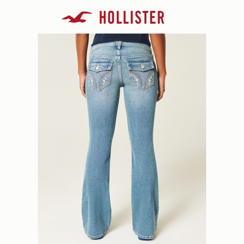 Hollister25秋冬新款Y2K辣妹修身低腰微喇牛仔裤女装355-5670