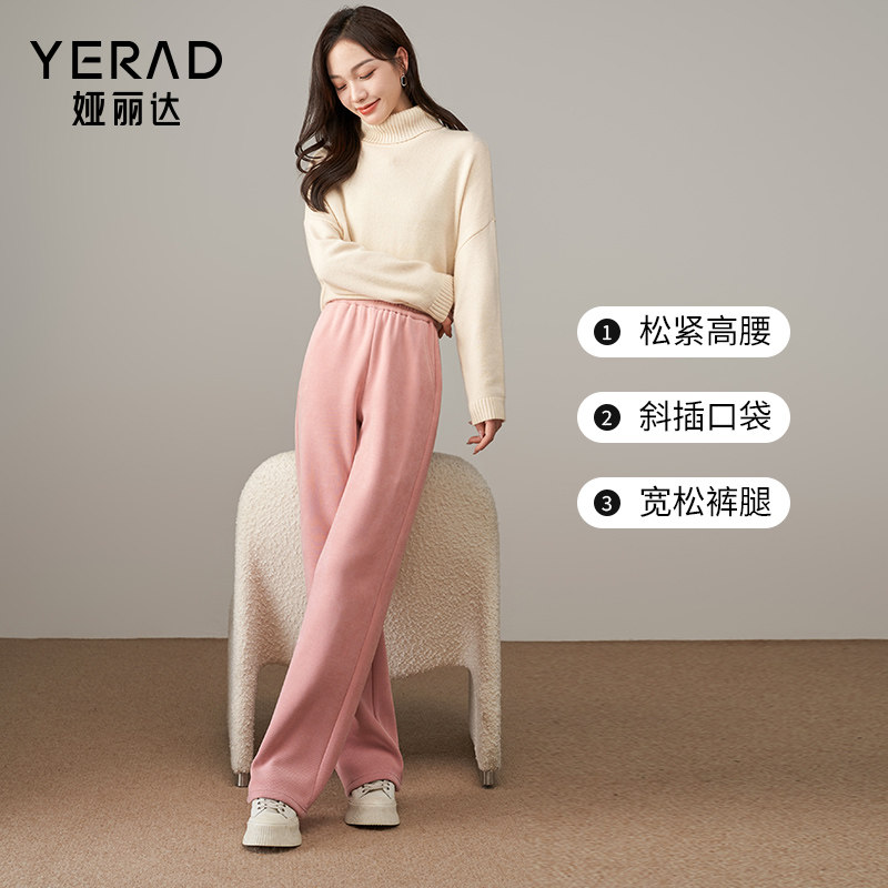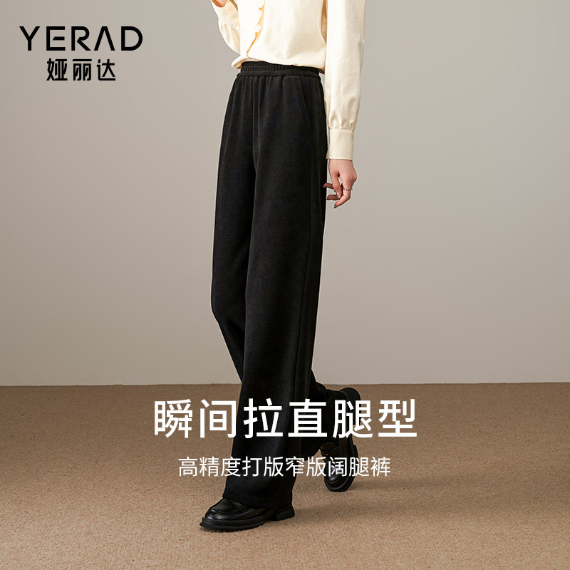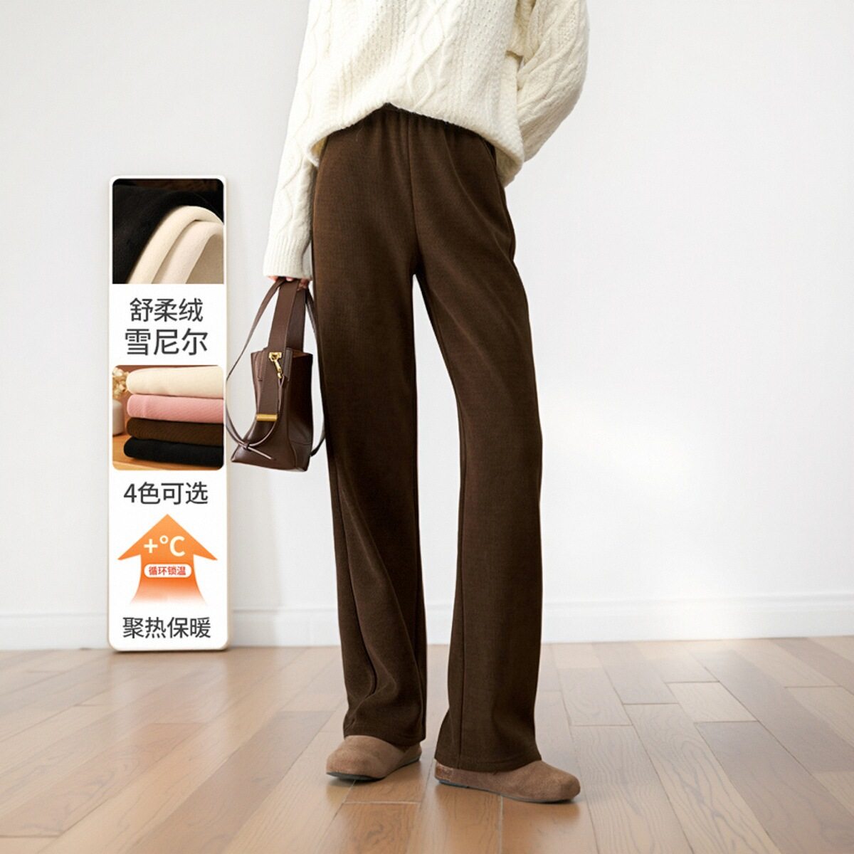 娅丽达糯米裤雪尼尔加绒阔腿裤女冬季休闲裤子2025新款黑色直筒裤
