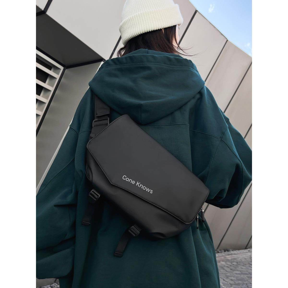 潮酷胸包男女同款磁吸扣单肩包简约防水斜挎包运动骑行跨包邮差包