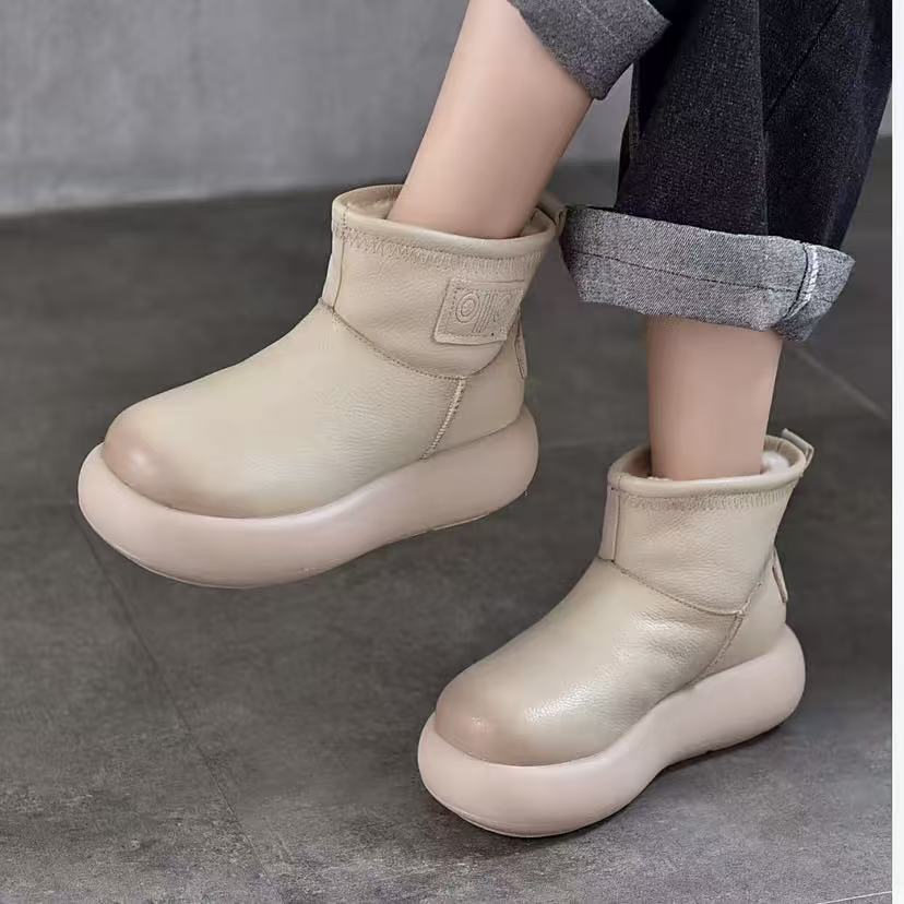 纯羊毛真皮圆头马丁靴短靴女冬季加绒保暖雪地靴休闲松糕厚底坡跟