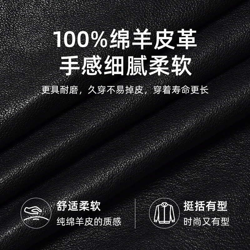 MCS甜酷翻领短款绵羊皮革皮衣女