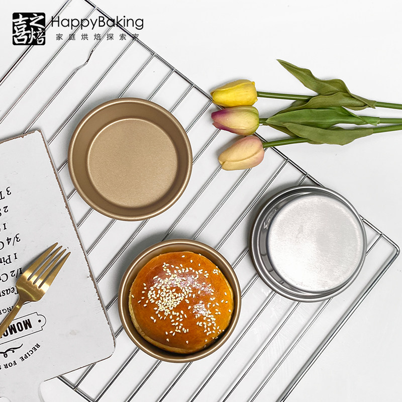 喜之焙4寸汉堡模金色模具不沾迷你蛋糕模面包模家用烘焙烤箱用