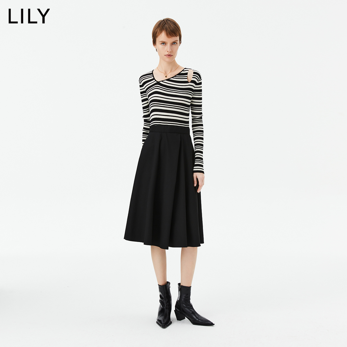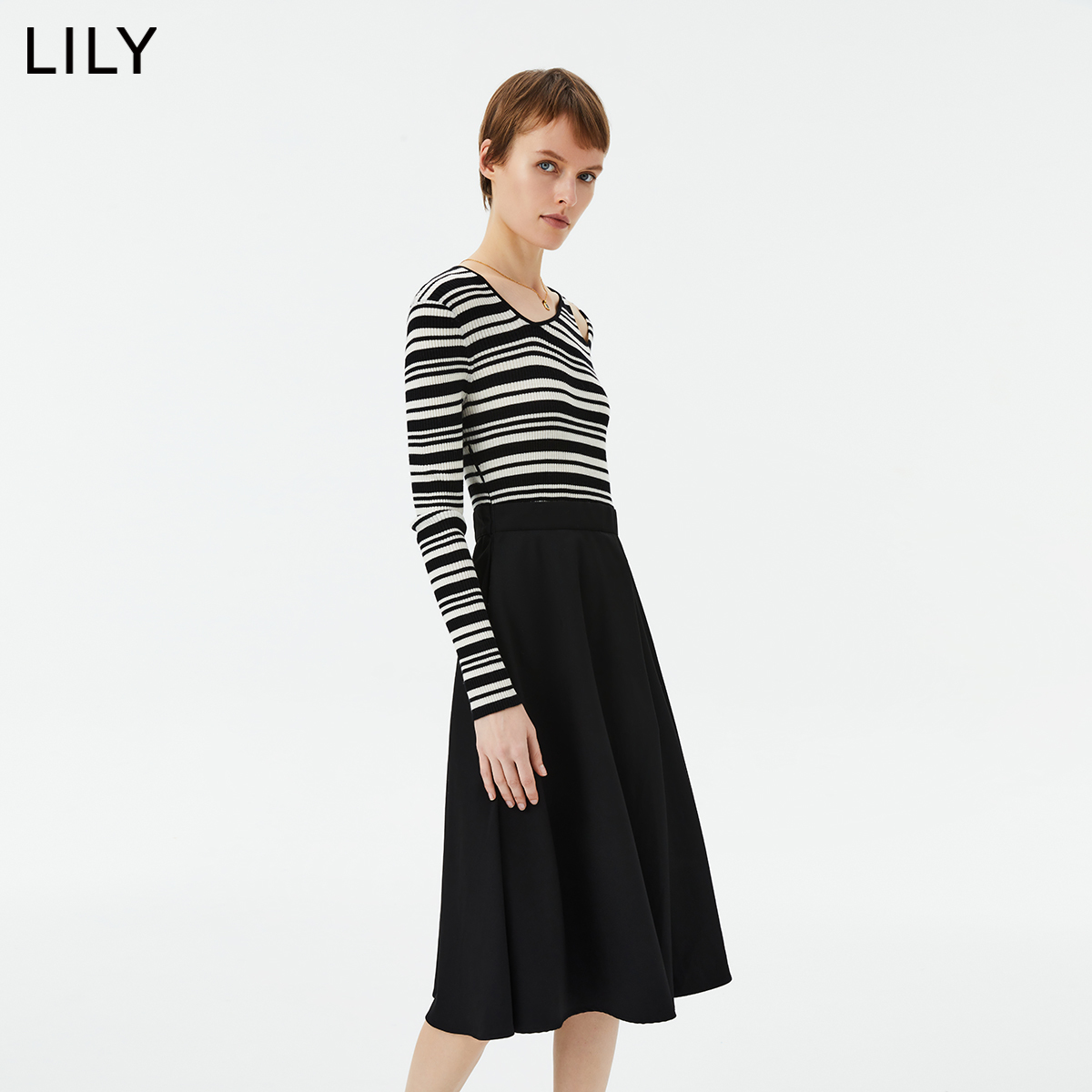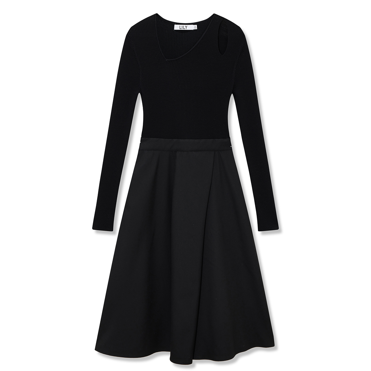 【商场同款】LILY新款女装设计感复古优雅假两件针织连衣裙