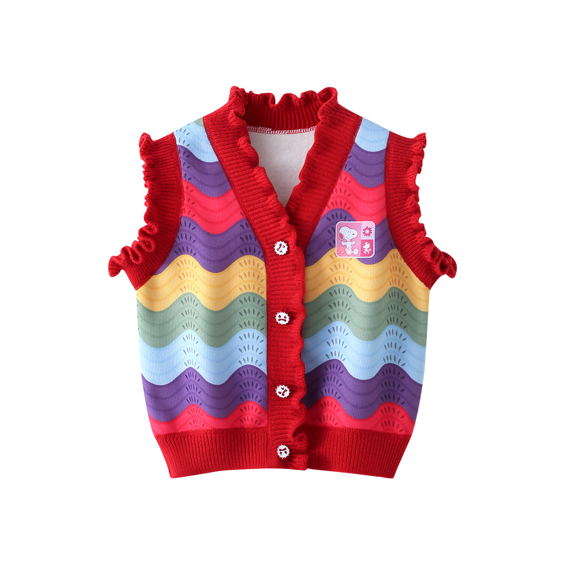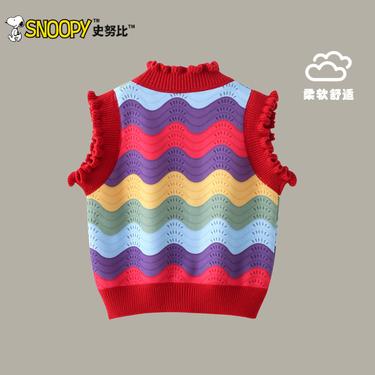 史努比女童马甲秋冬2025新款宝宝加绒针织上衣儿童马夹背心外穿
