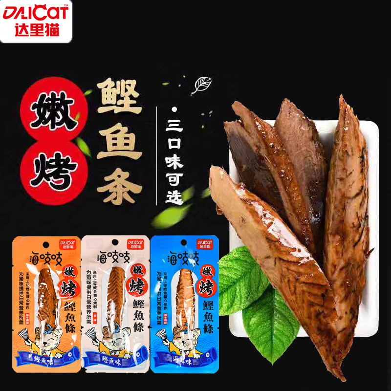 达里猫海吱吱猫条小鱼干猫零食10支嫩烤鲣鱼条金枪鱼猫咪鱼干纯肉