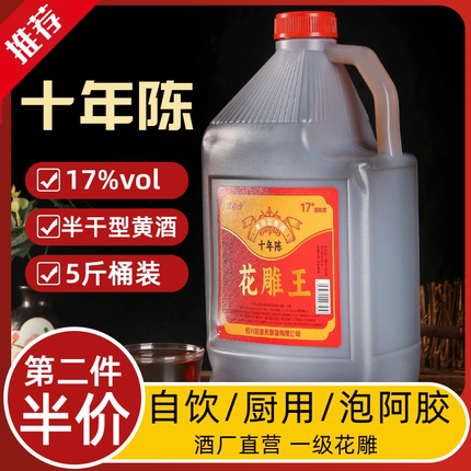 黄酒绍兴官方旗舰店正品17度一级花雕王十年陈酿5斤装花雕酒烧菜