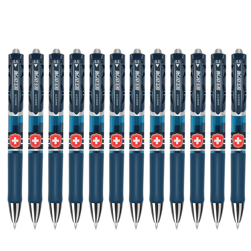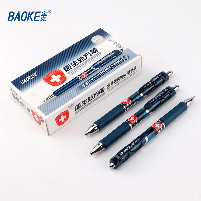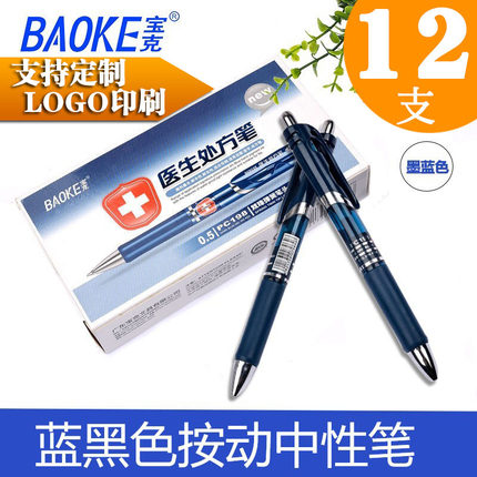 宝克PC198按动笔墨蓝水笔蓝黑色中性笔签字笔医生处方笔0.5mm护士碳素笔医院用笔按压笔企业广告定制印刷logo