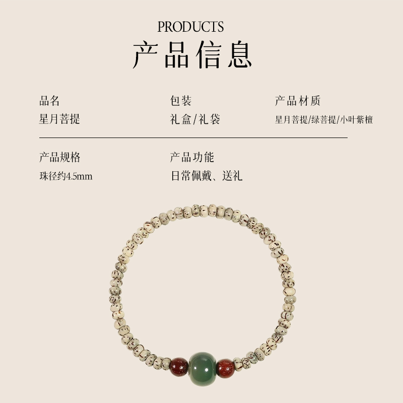 普陀山正品原生态星月菩提手串男女绿菩提子小叶紫檀转运文玩饰品