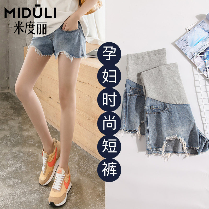 孕妇牛仔短裤孕妇裤女夏季裤子春夏天薄款大码打底裤潮妈外穿夏装
