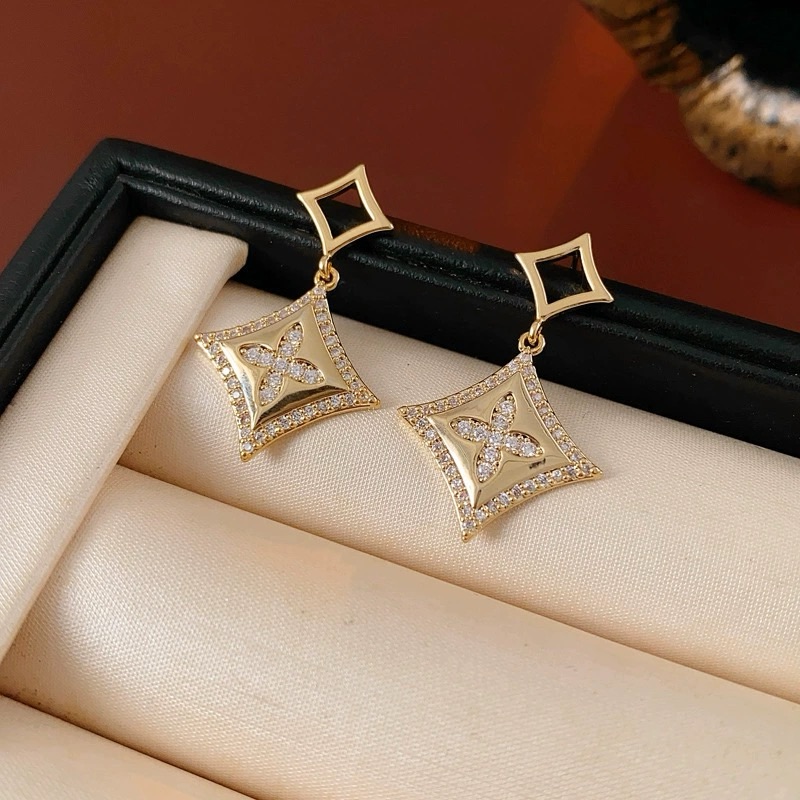 旭平菱形四芒星耳钉女轻奢精致通勤日常时尚高级感气质度假风耳饰