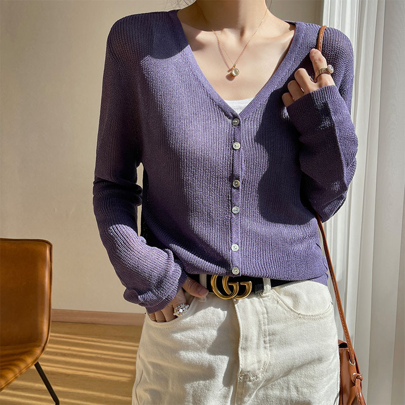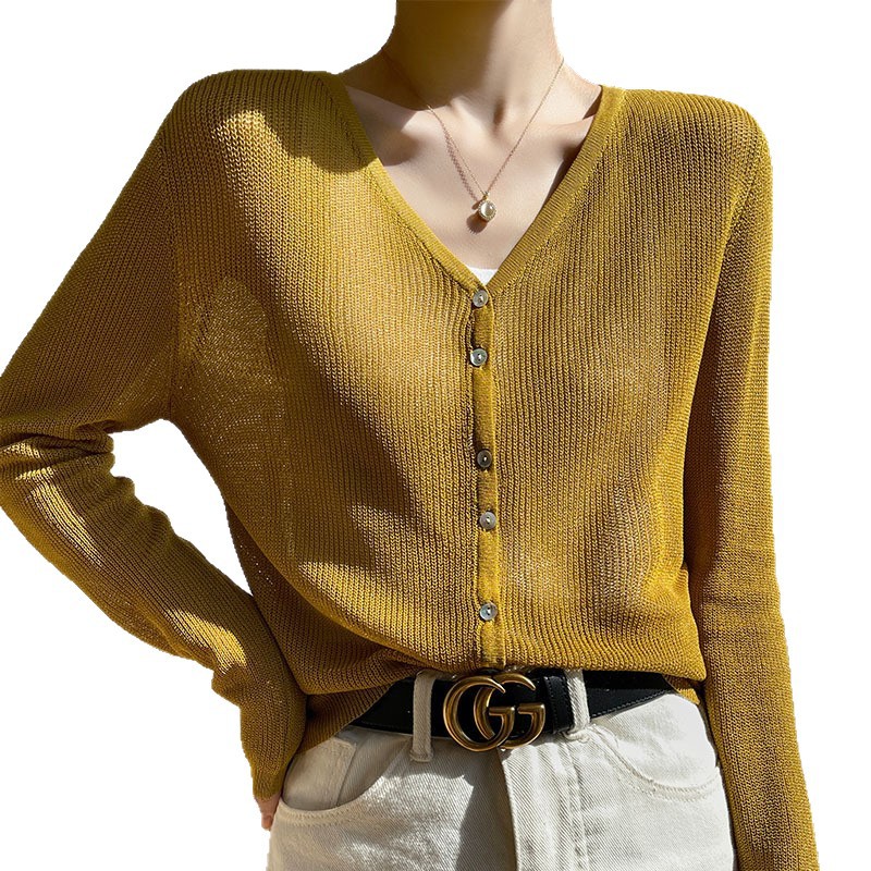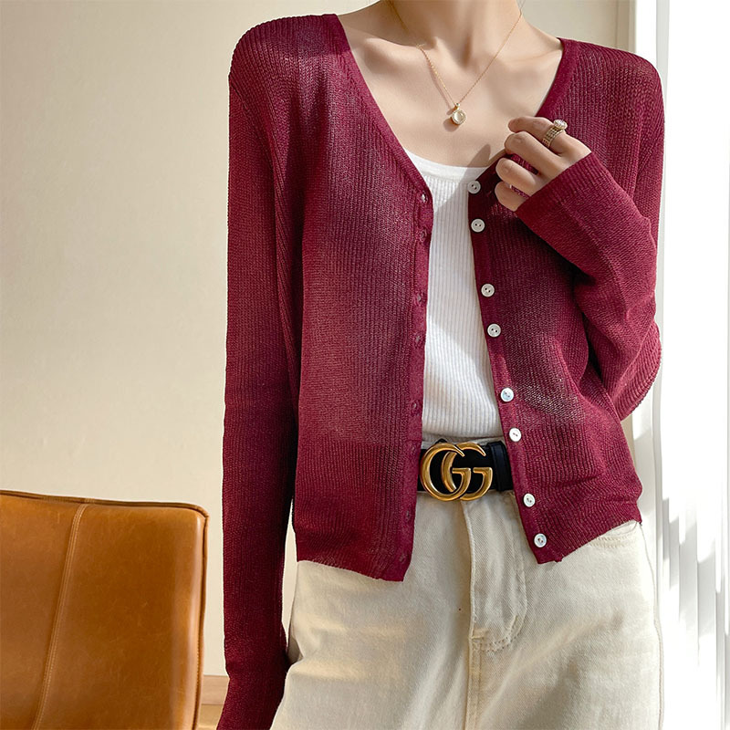 针织开衫经典款冰丝防晒短款女士小外套亚麻镂空外搭空调衫披肩