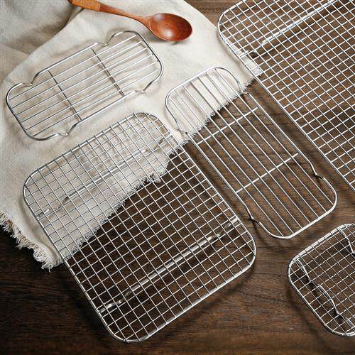 不锈钢烧烤网铁丝网格网片长方形烤网用具小格沥油网架工具圆形炉