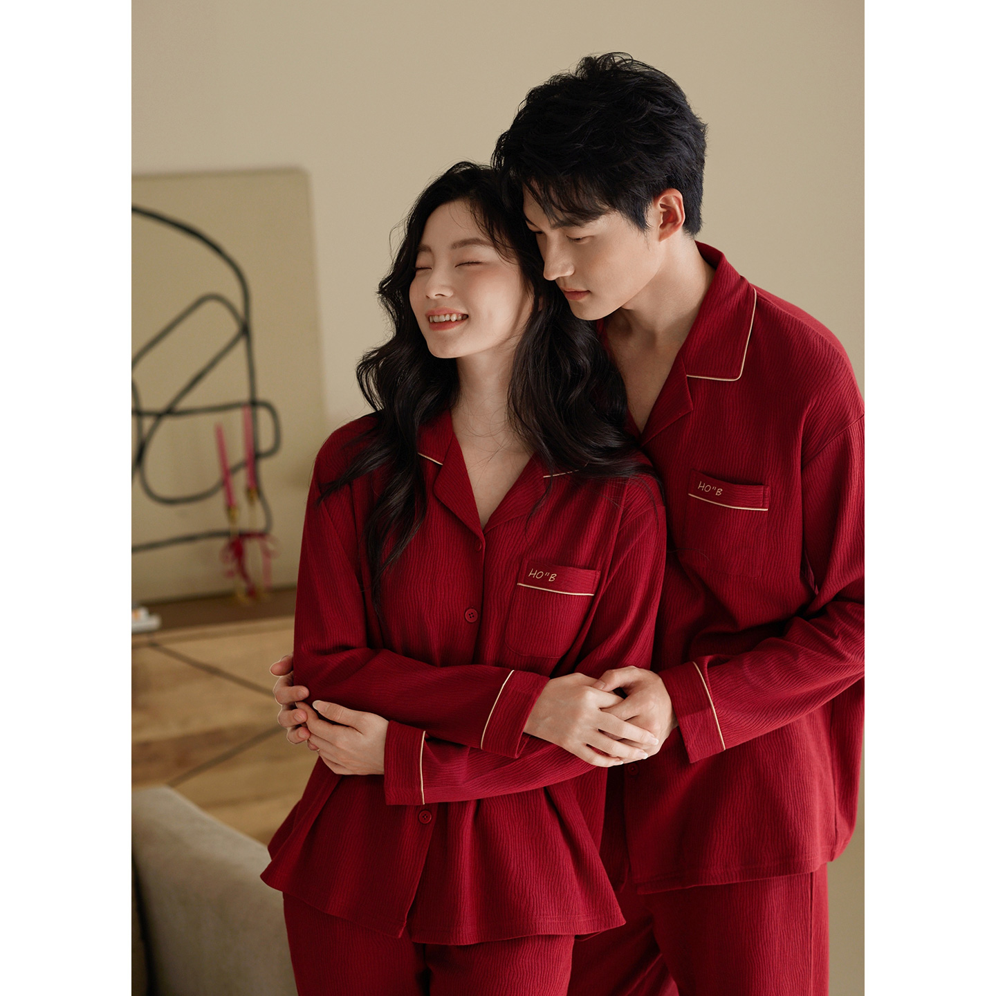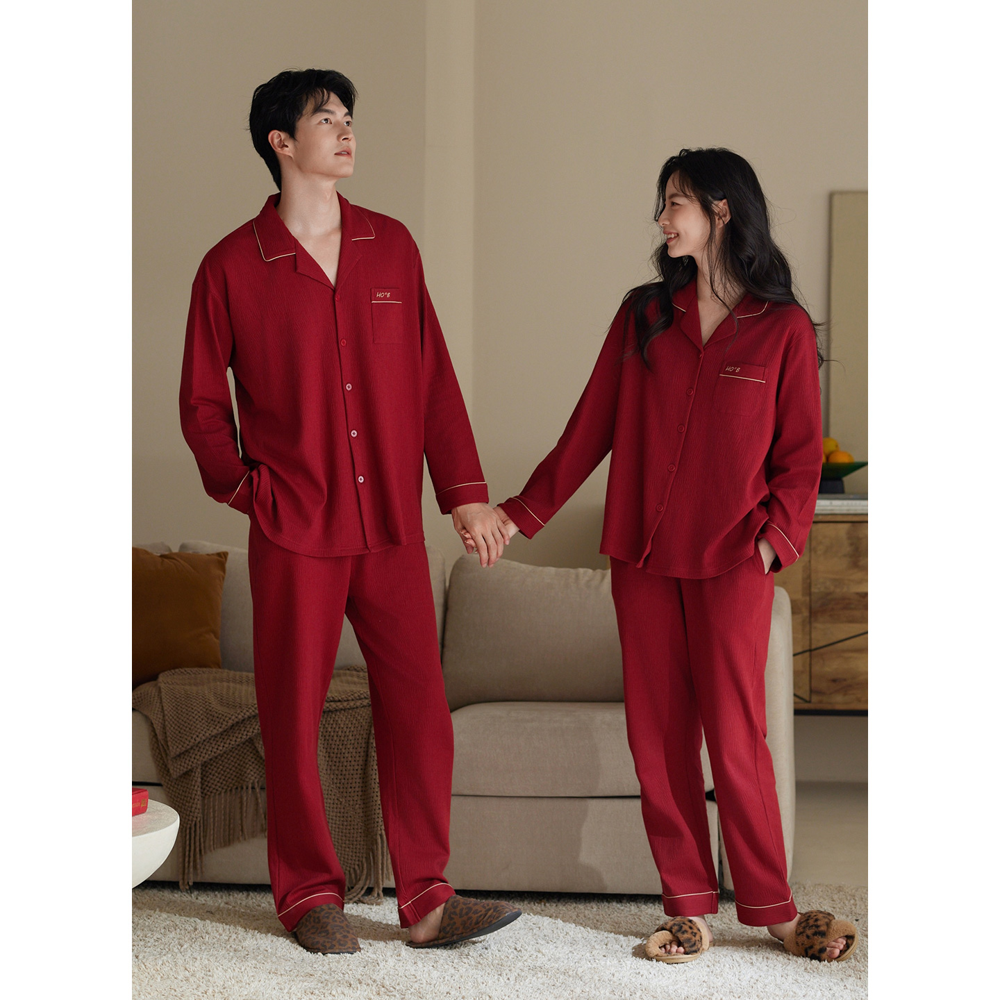 情侣睡衣女春秋款纯棉长袖大红色本命年新婚结婚喜庆男家居服套装