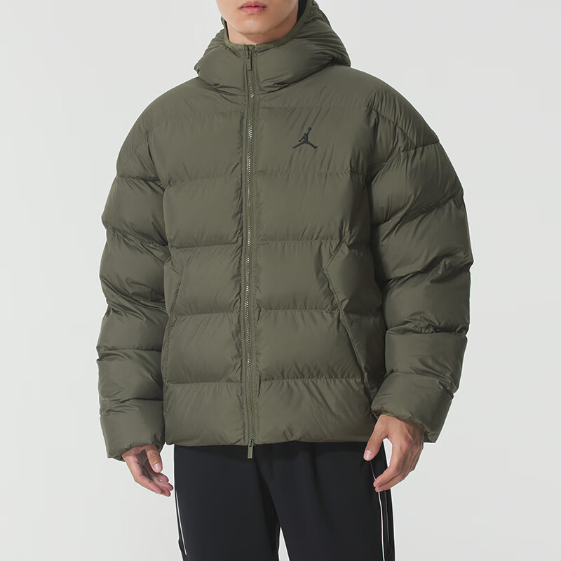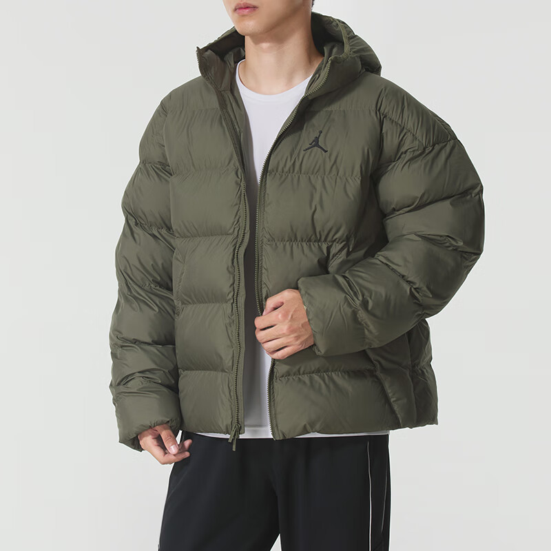 JORDAN棉服耐克男装绿色防风保暖连帽运动面包服宽松跑步休闲棉衣