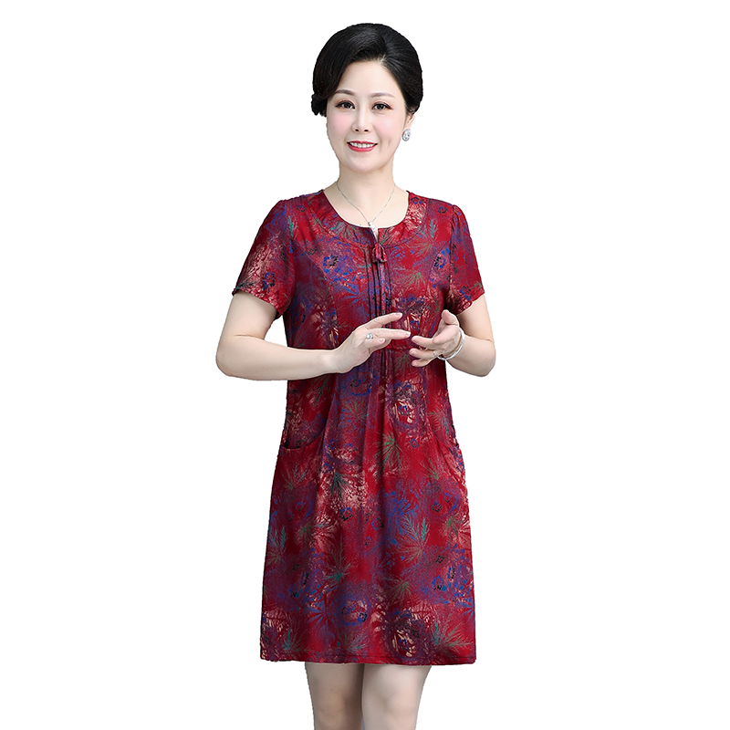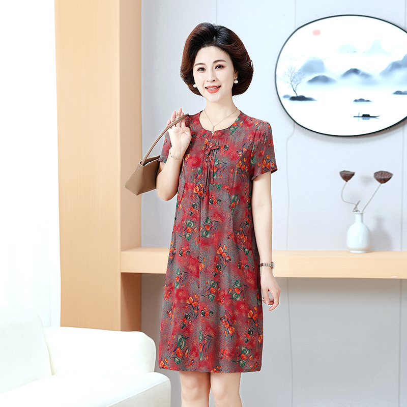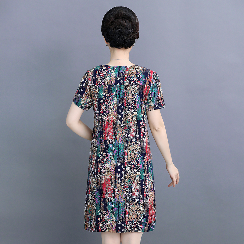 中老年大码夏季棉绸连衣裙妈妈短袖洋气女夏装人造棉宽松花色裙子