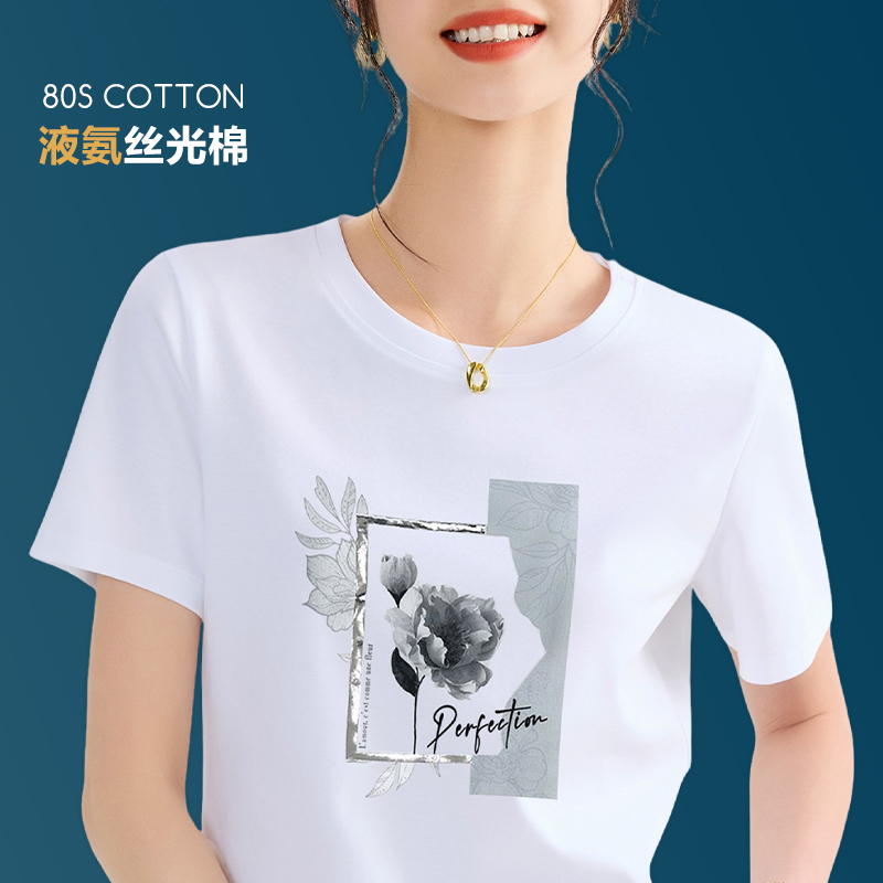 液氨丝光棉白色短袖t恤女夏2025新款宽松显瘦洋气休闲圆领打底衫