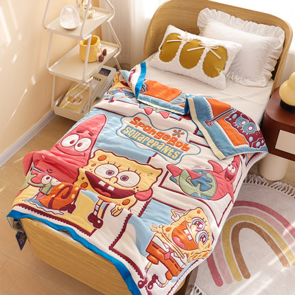 A类十层纯棉纱布儿童盖毯毛巾被透气卡通面包被海绵宝宝全棉毯子