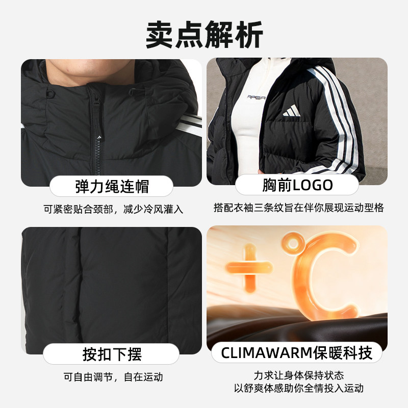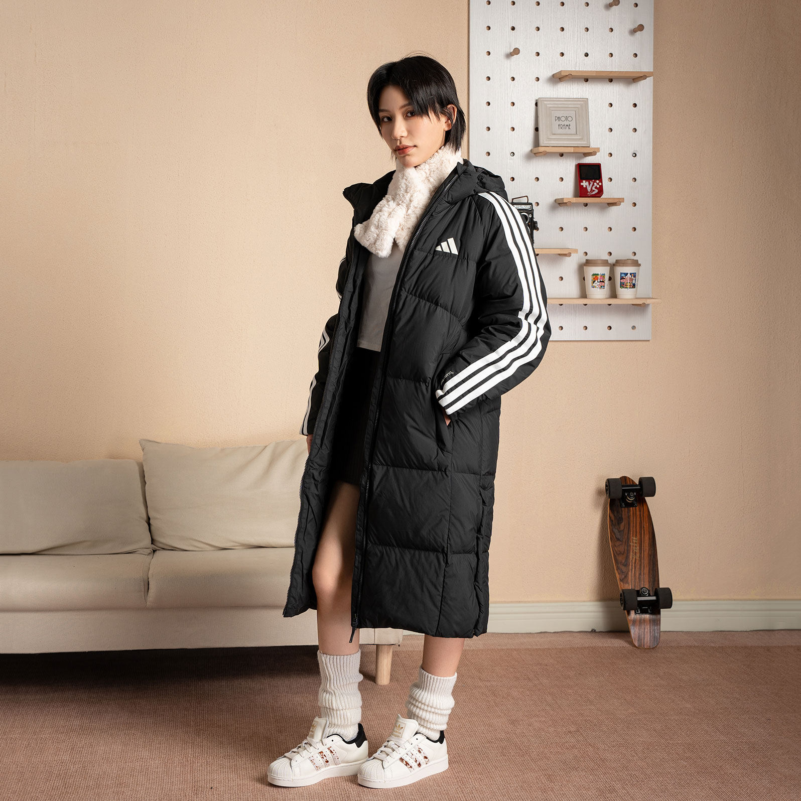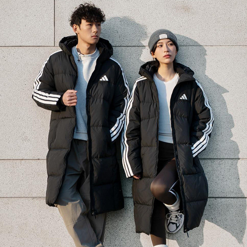 阿迪达斯长款羽绒服男装女装2025新款情侣保暖运动服连帽羽绒外套
