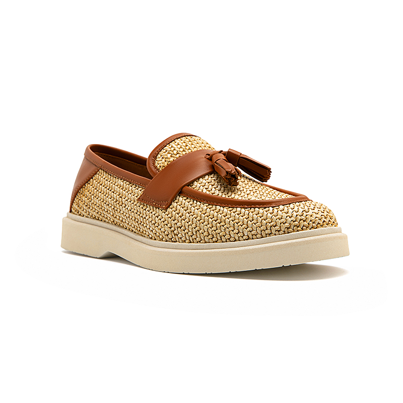 皮尔卡丹拉菲草拼接设计乐福女鞋