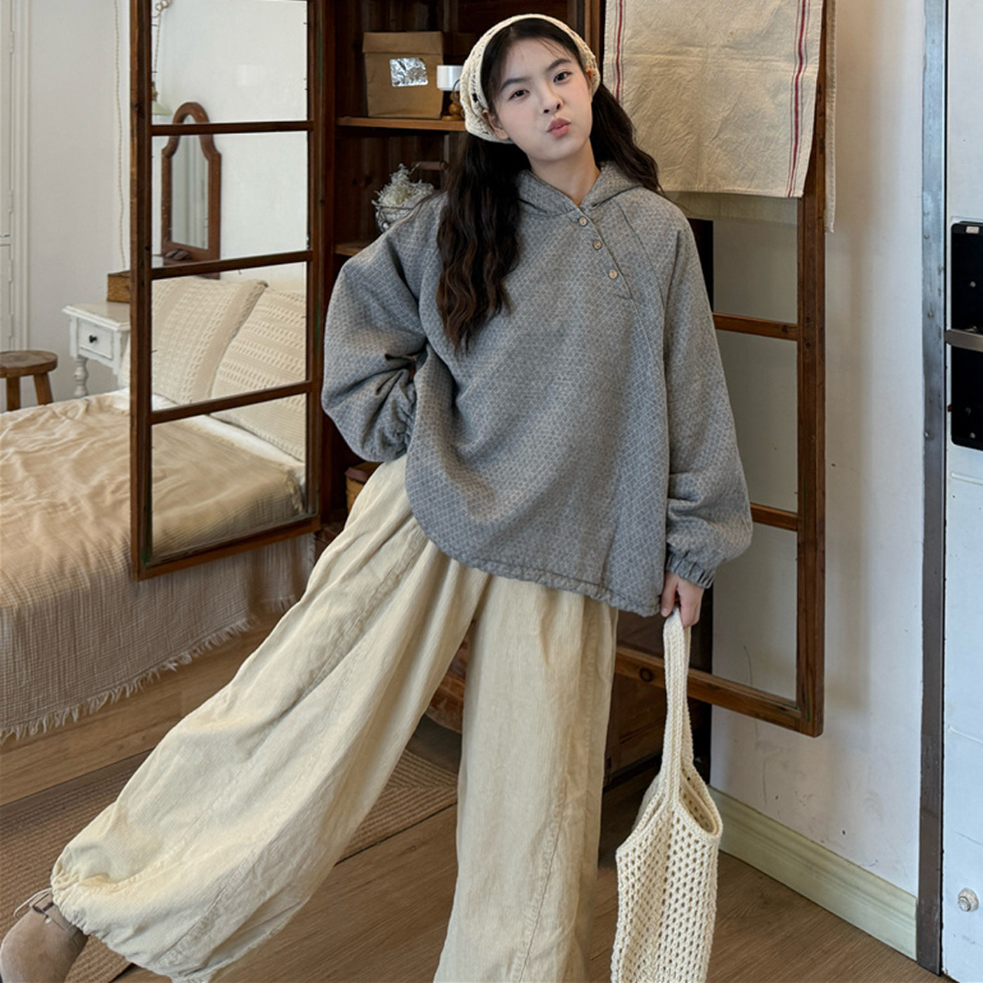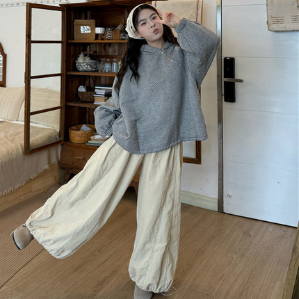 设计感夹棉卫衣休闲裤显瘦套装