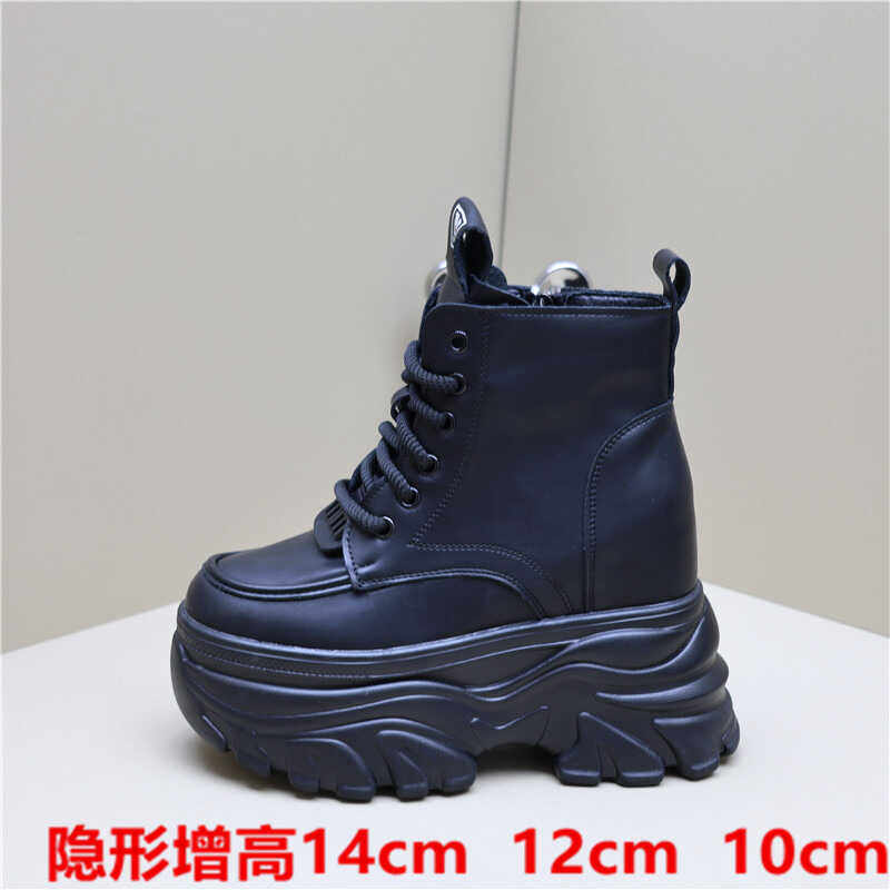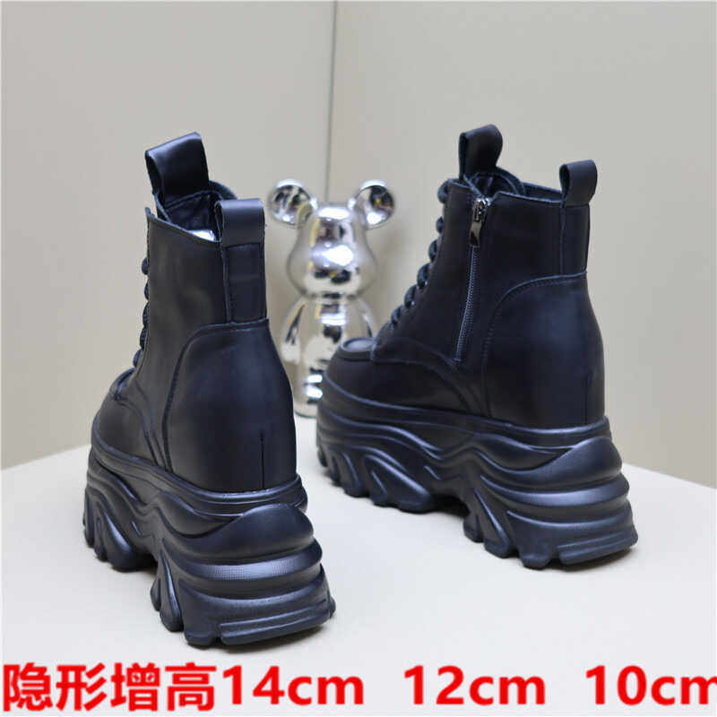 英伦风12cm松糕底短靴10cm内增高马丁靴女小个子14cm高帮老爹鞋