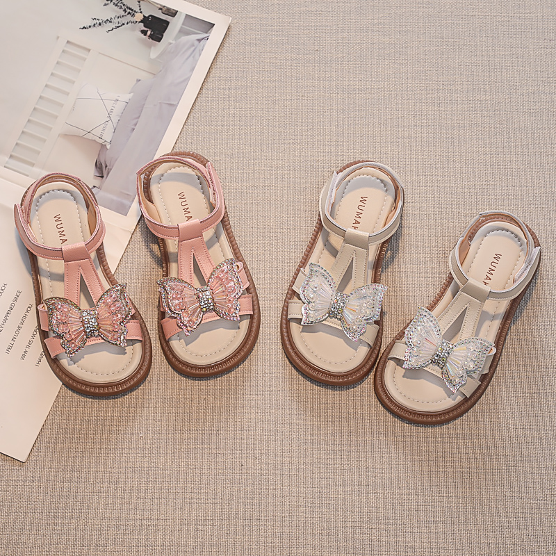 女童凉鞋夏款2025年夏季新款真皮软底蝴蝶结公主鞋女童鞋儿童鞋子