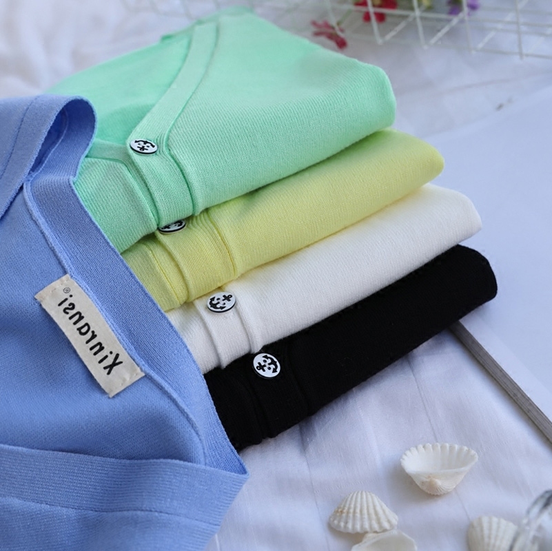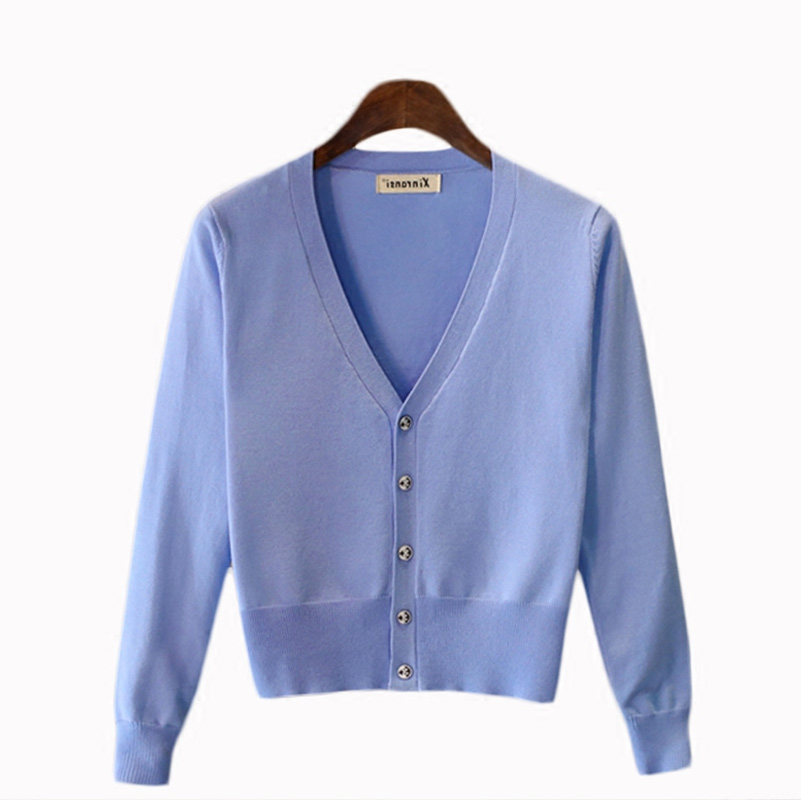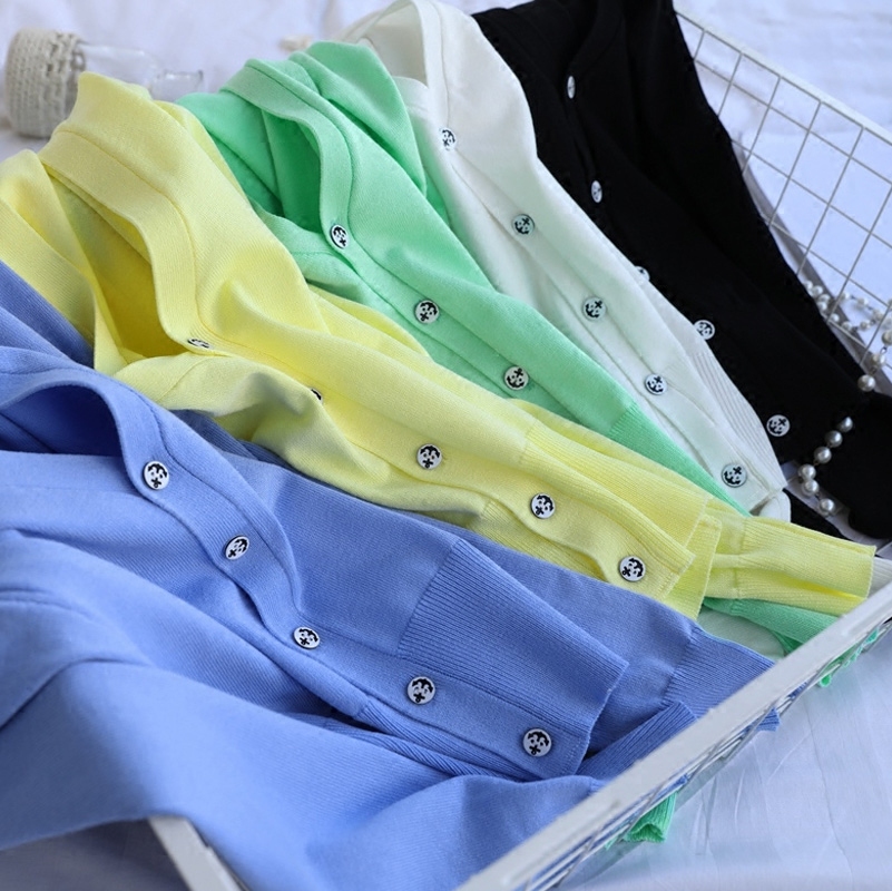 2024春秋新款长袖chic慵懒风短款V领百搭薄款针织开衫外套女上衣