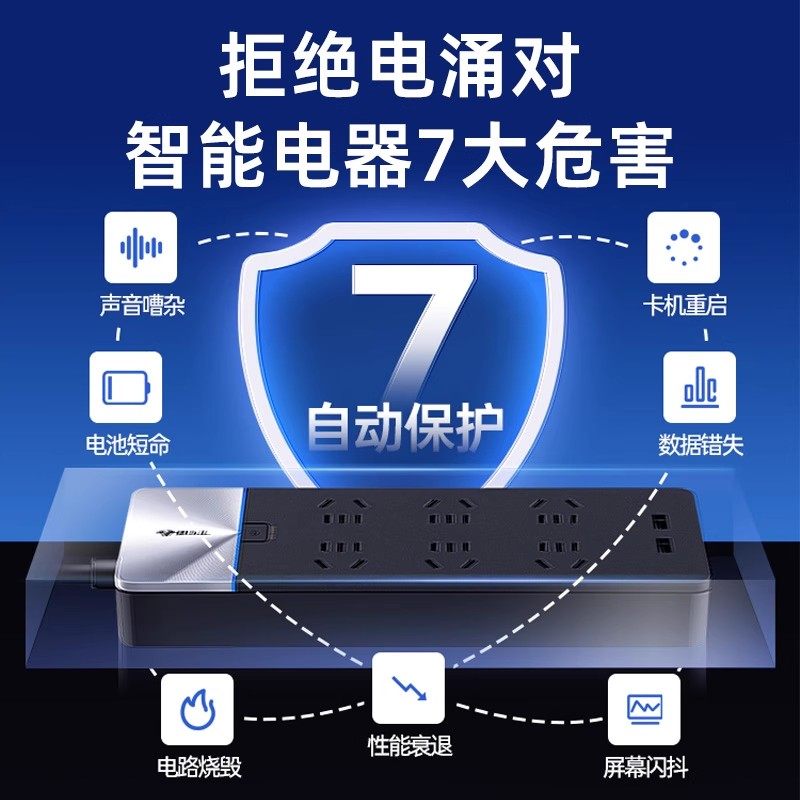 公牛防雷抗电涌插座家用办公接线板插排带数显大功率多插位排插