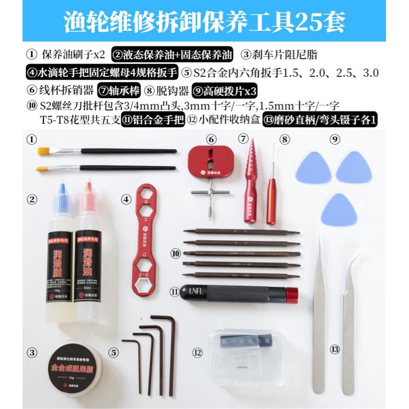 水滴轮鼓轮拆销器扳手螺丝刀保养油拆卸维修改装渔轮保养工具套装