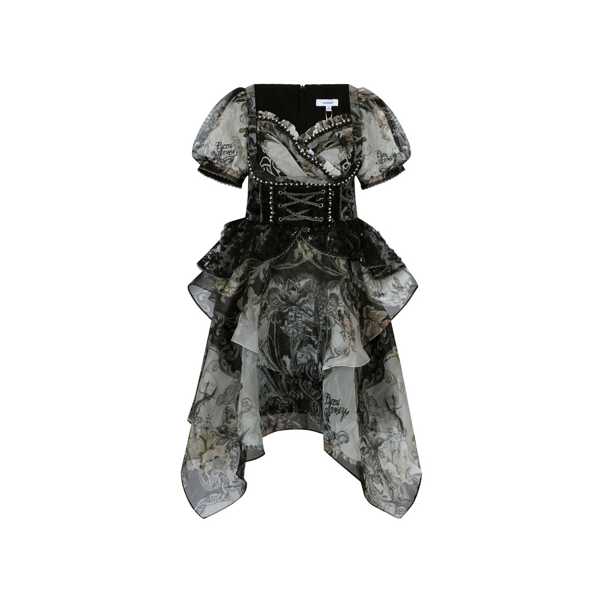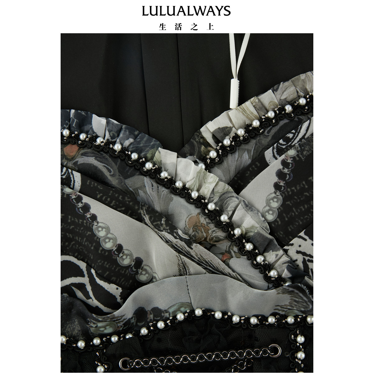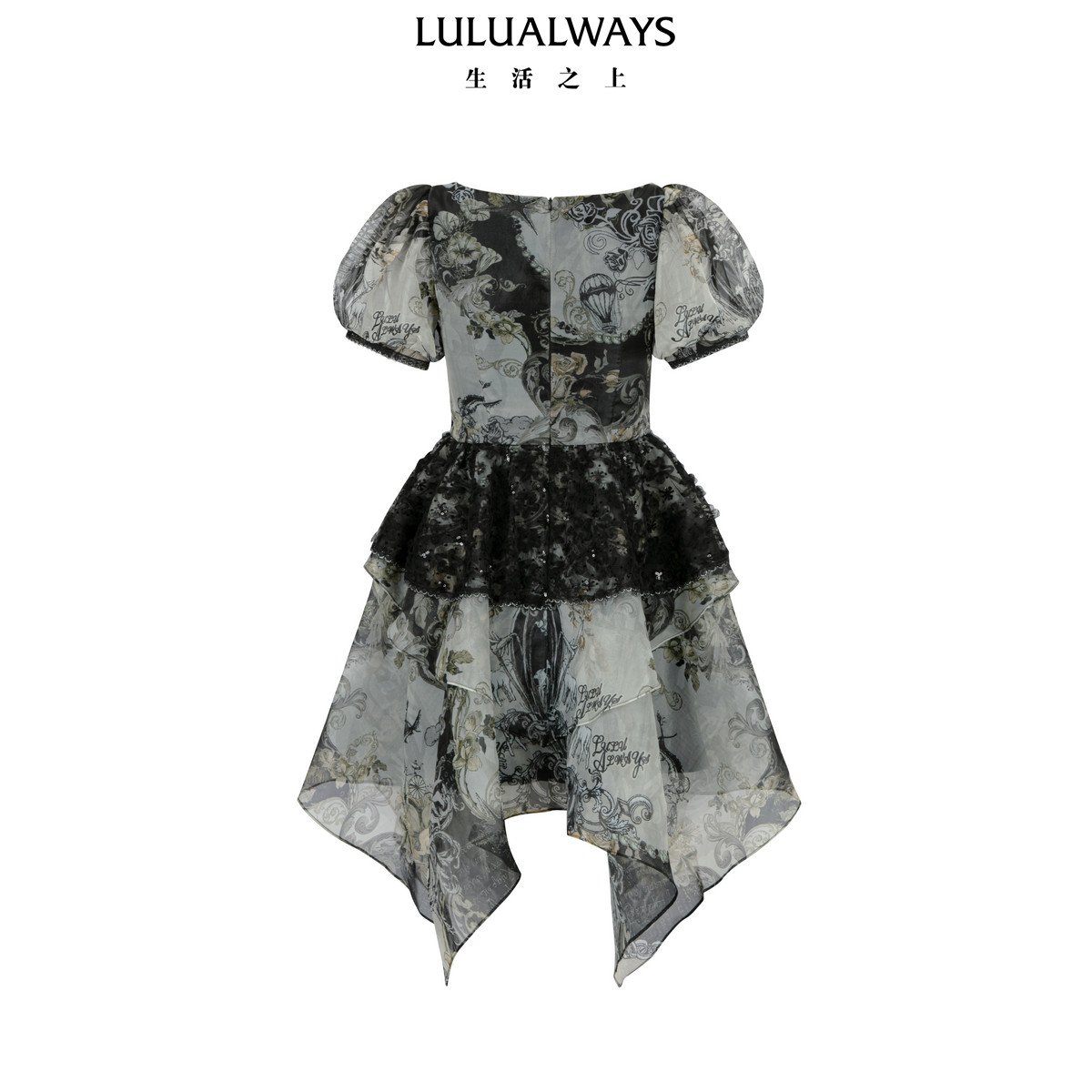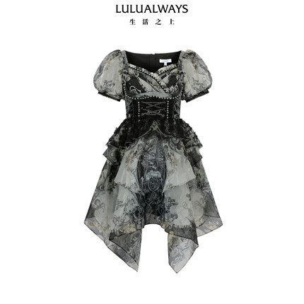 LULUALWAYS【商场同款】25夏季新款法式复古印花欧根纱收腰连衣裙