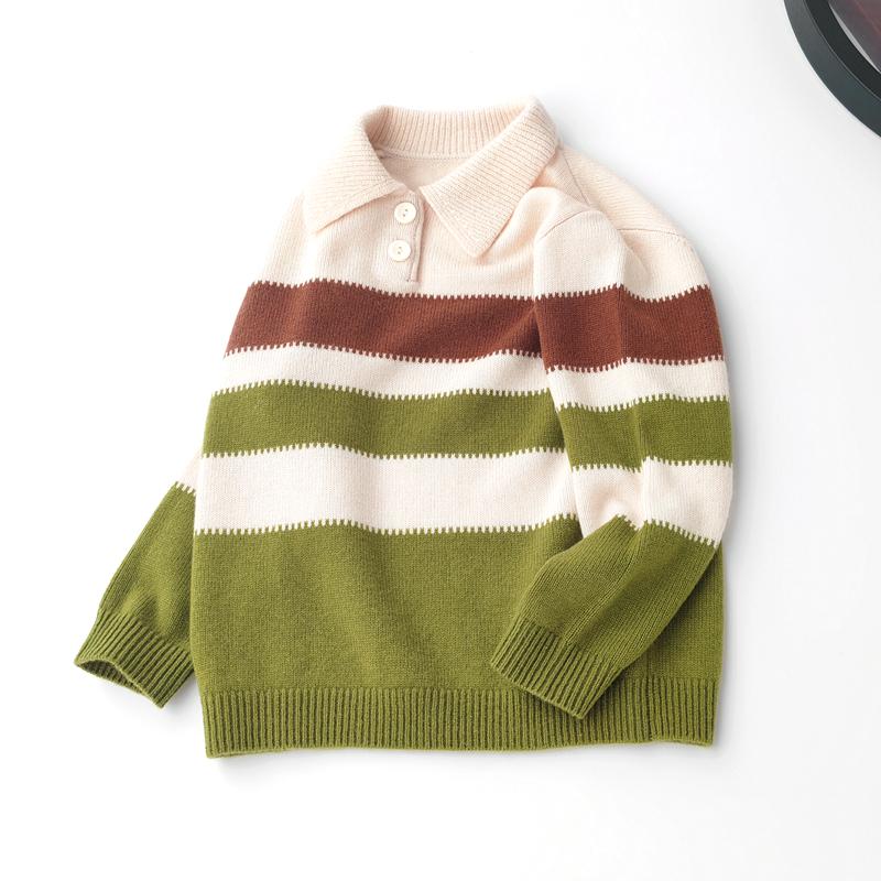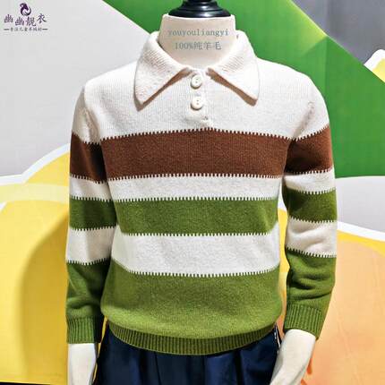 纯羊毛Polo衫男童毛衣中大童针织衫翻领条纹春秋冬款加厚