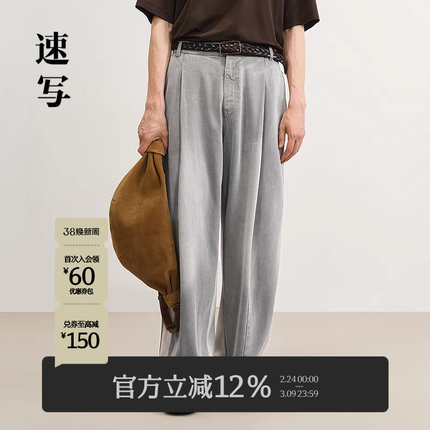 [弯刀裤]速写男装春夏新款男士裤子拼接莱赛尔牛仔裤复古水洗