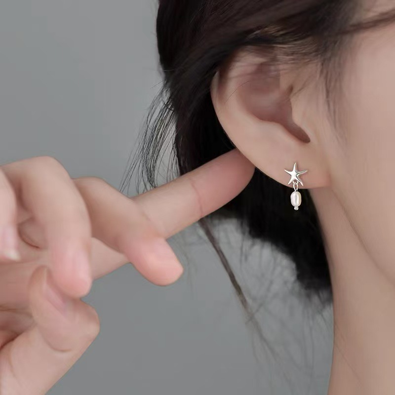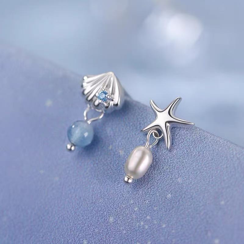 2025新款海星贝壳不对称耳钉女气质珍珠耳饰小众轻奢高级感耳环