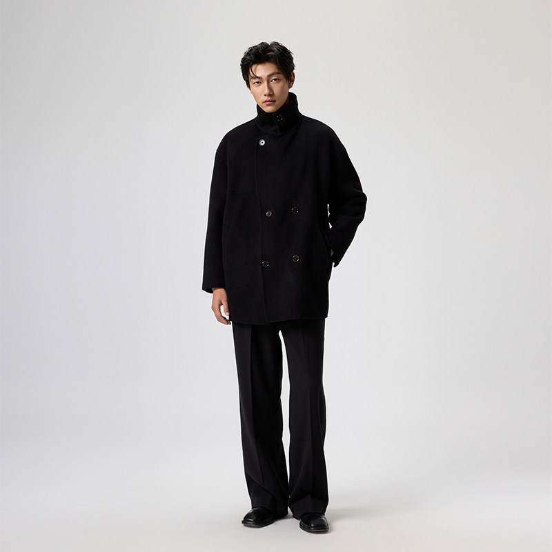 TUTM男装 【澳洲纯羊毛】双排扣中长款毛呢大衣冬季双面呢子外套