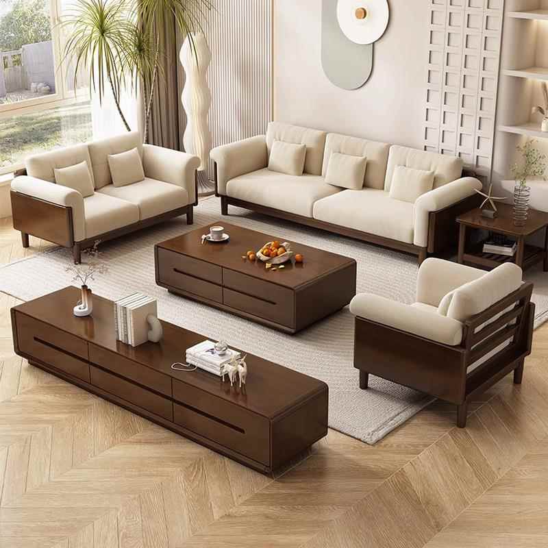 北欧实木沙发组合带坐垫客厅小户型L型简约现代风日式奶油风