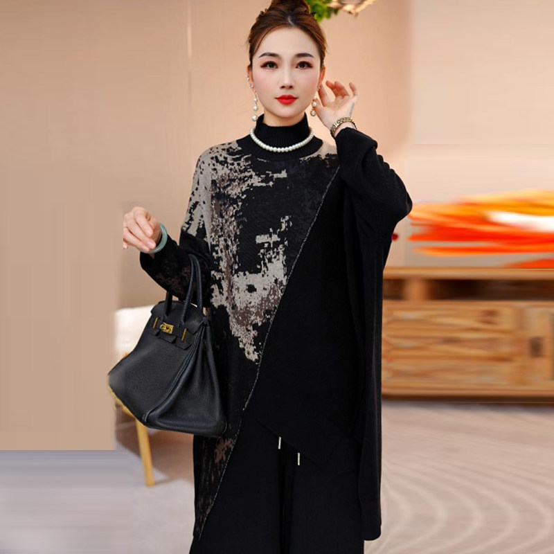 时尚百搭中长款半高领针织衫上衣女2025冬季新款宽松显瘦毛衣内搭